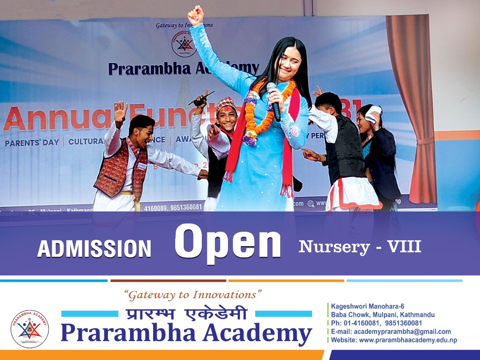 " Gateway to Innovation "Prarambha Academy one of the reputed institution of Kathmandu Valley which lies in the heart of Kageshwori Manohara-06, Kathmandu, Nepal. It was established with the aim of offering the best available schooling services to the children of this locality. The motto of the school is to enrich every pupil with exciting opportunities to learn in any type of environment through various co-curricular and extracurricular activities .We are strengthening our academic input through advanced technology ,highly experie...